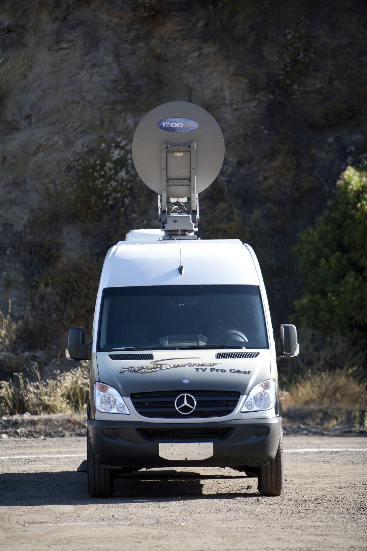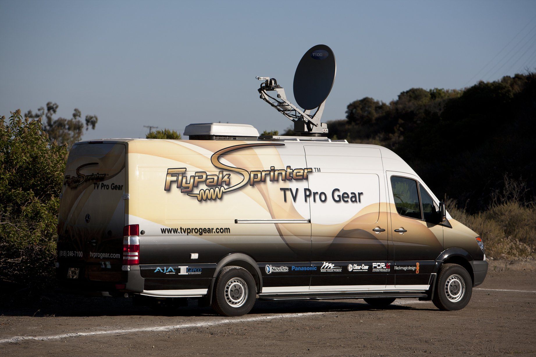 The Sprinter/Flypak™ is a multi-camera broadcast video production van designed for shooting live events. It can be equipped with up to ten cameras, instant replay, slow motion, graphics, Internet streaming and a satellite uplink.
