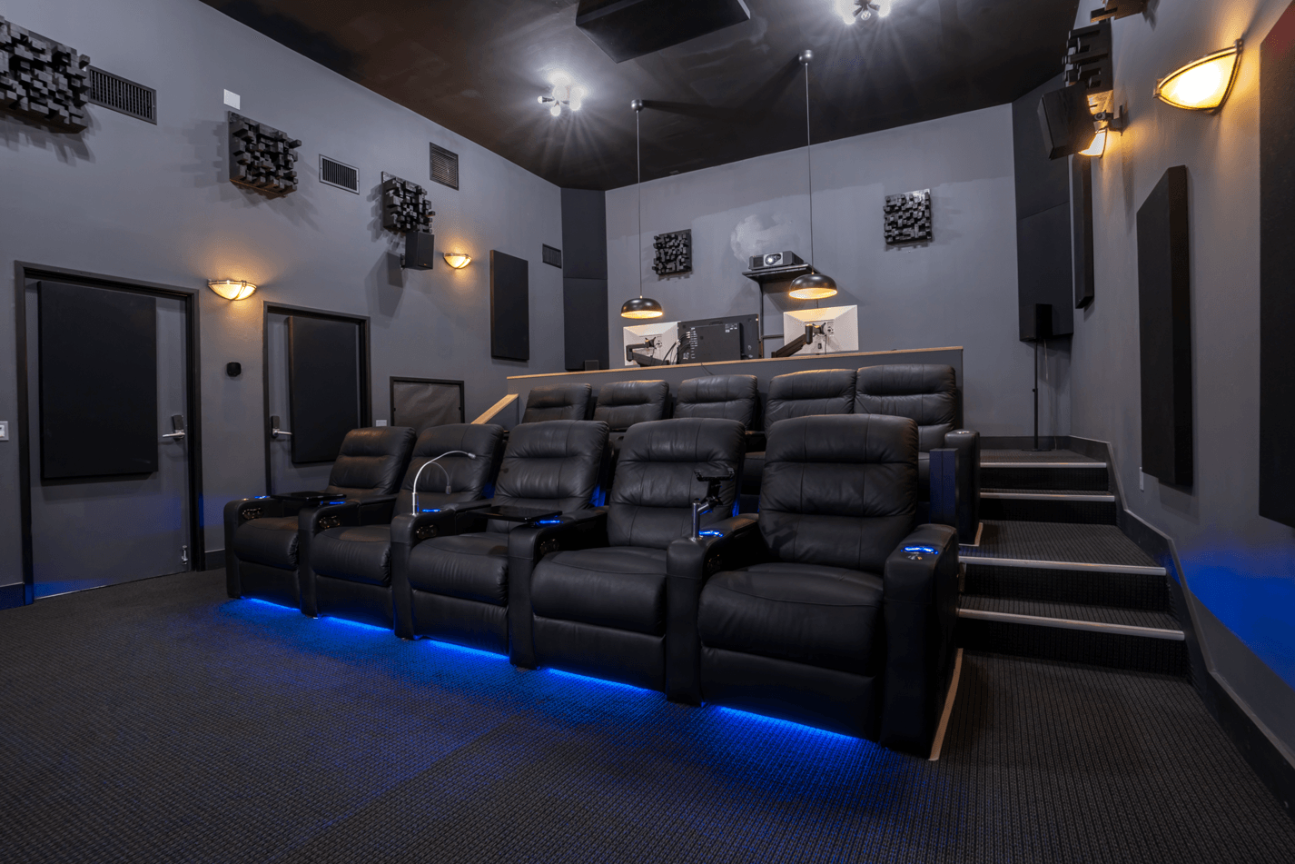 Outfitted with surround sound, this is the ideal place for color correction/grading and allows for effortless control of your project. Finally, 10 fully reclining loungers provides maximum comfort for your next screening or party.