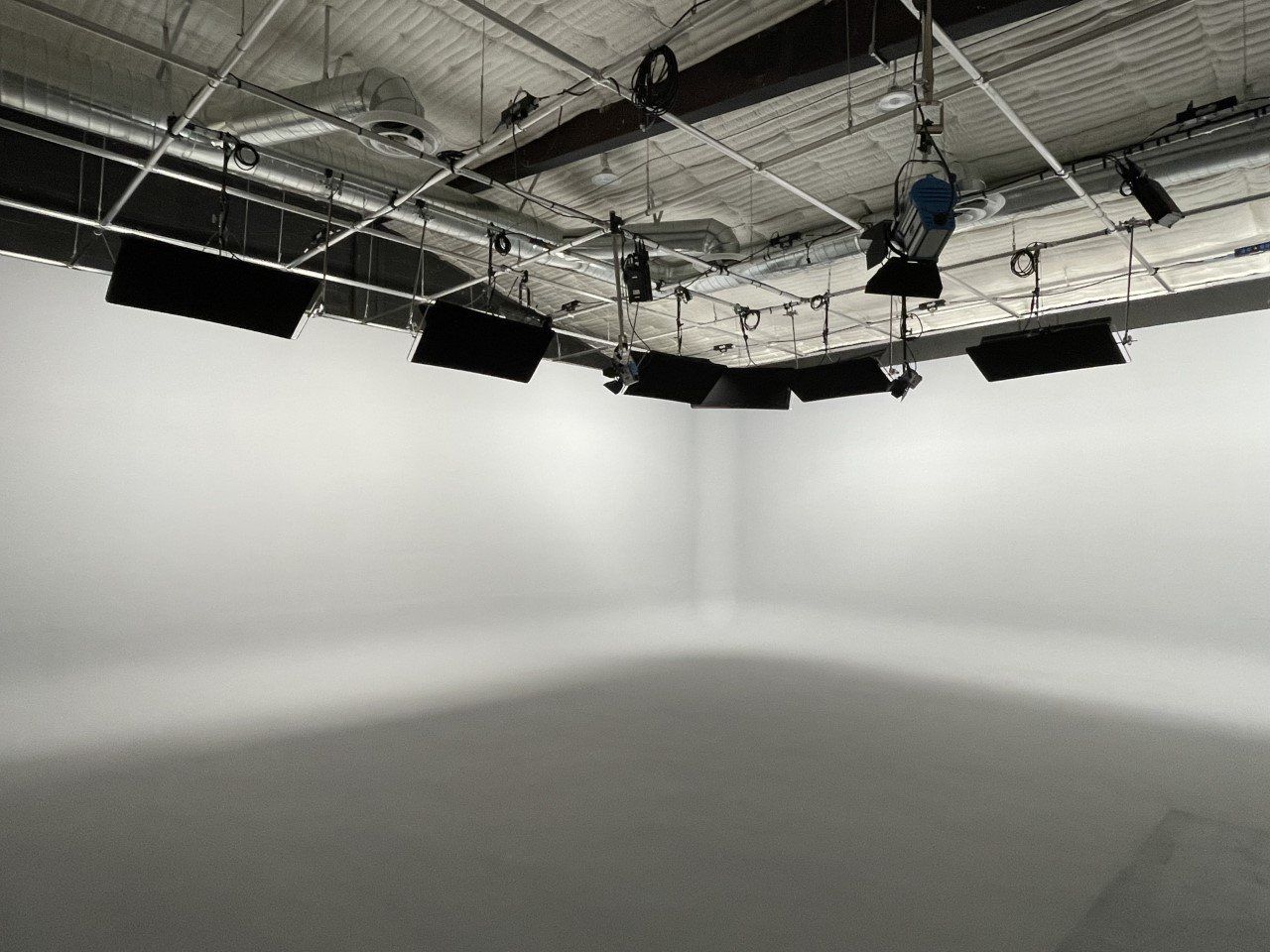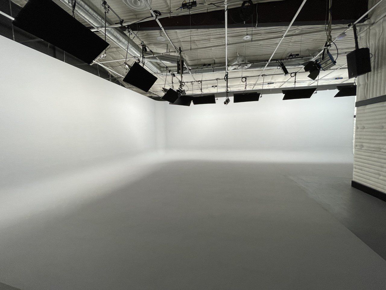 • Soundproof soundstage with 38’x30’x13’ pre-lit Cyc Wall, lighting grid at 14 feet, advanced power distribution and Bluetooth enabled PA speakers.