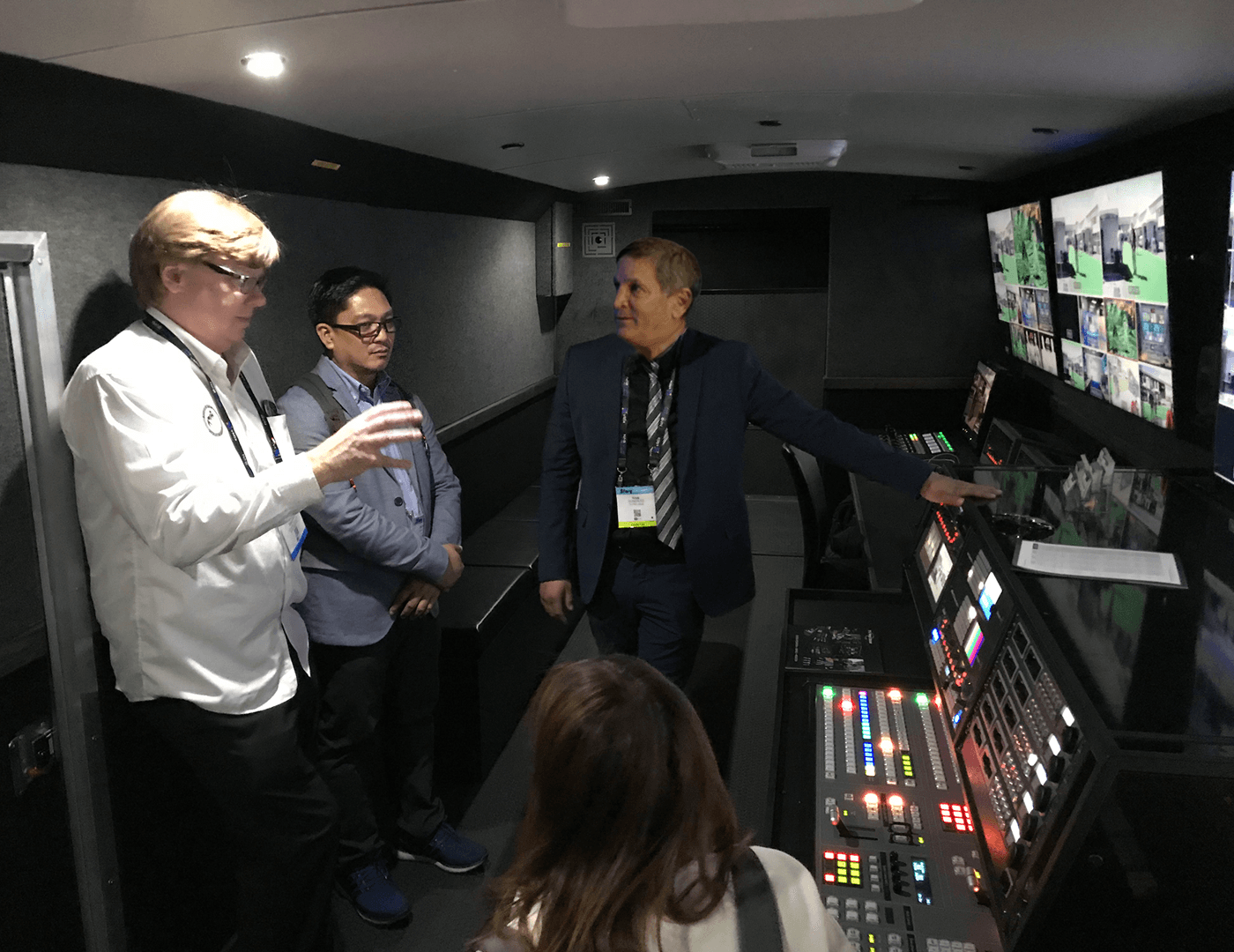 The Trailer accommodates up to 10 crew members including the director, technical director, engineer, shader, title/graphics operator, sound engineer and instant replay operator.